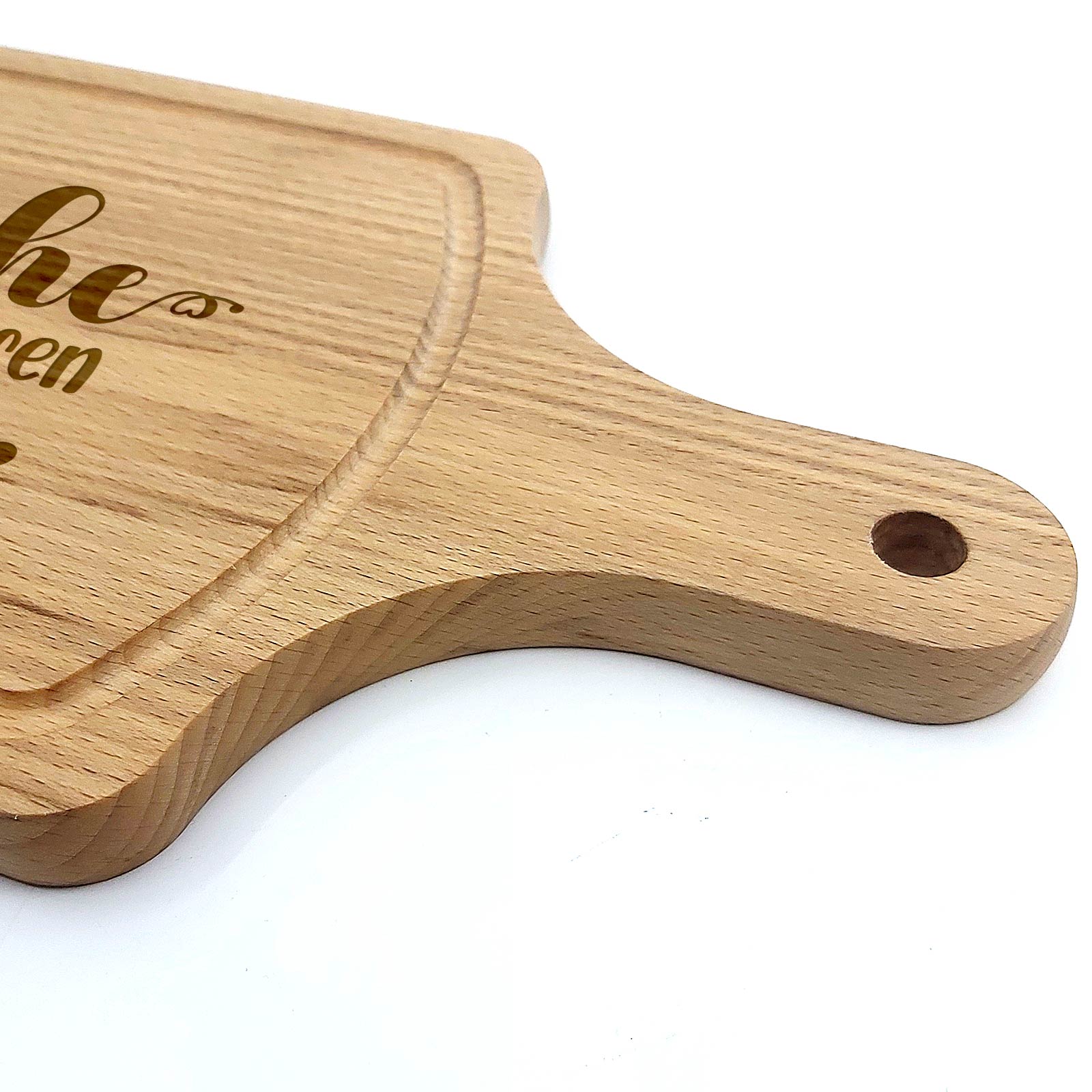 Dieses gravierte Schneidebrett aus Holz ist nicht nur funktional, sondern auch ein wunderschöner Blickfang für jede Küche. Wir verwenden ausschließlich hochwertiges europäisches Holz, das sorgfältig behandelt wurde,