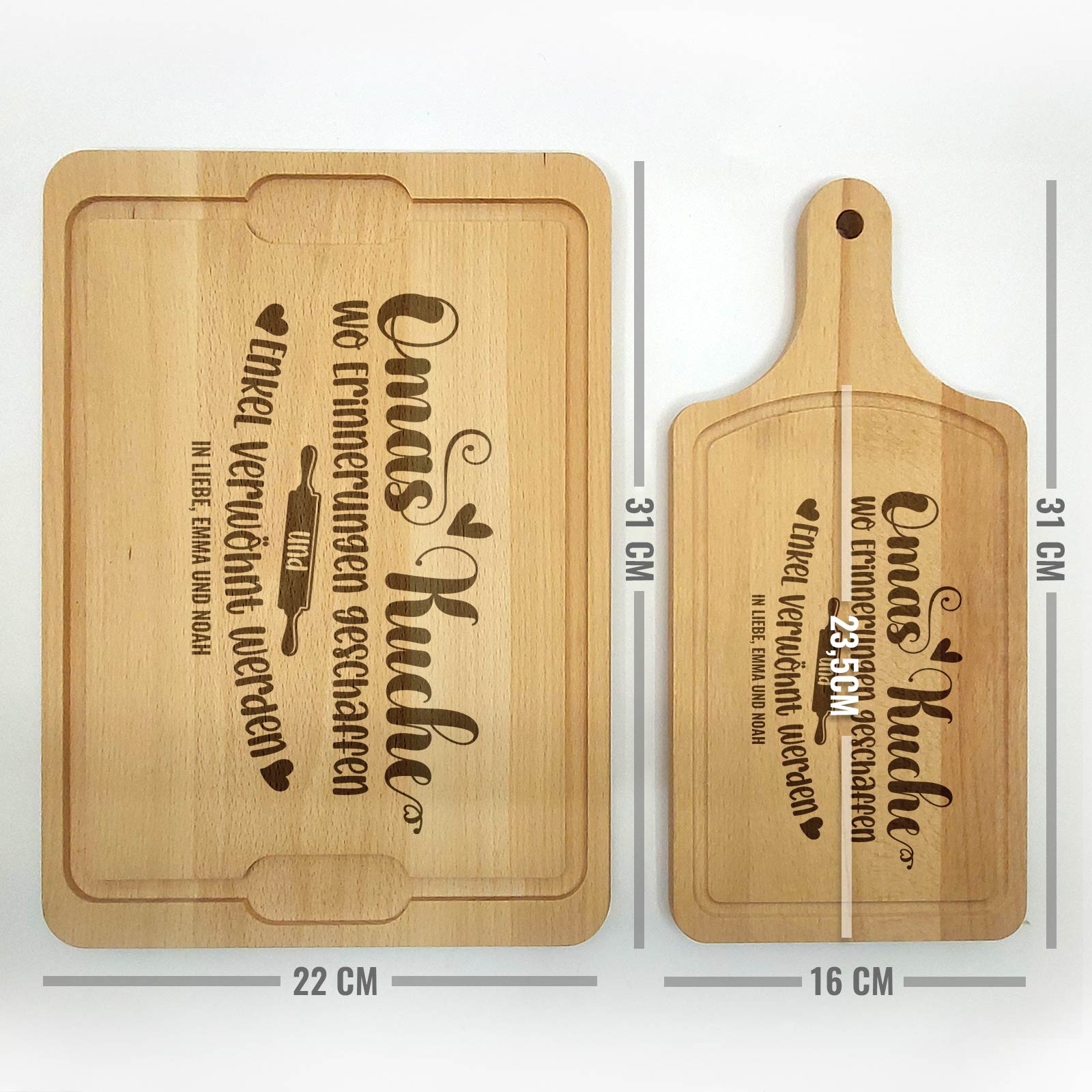 Holz ist ein Naturprodukt, daher kann die Gravur leicht von den gezeigten Fotos abweichen. Die Maserung des Holzes beeinflusst die Farbintensität der Gravur, wodurch jedes Brett ein echtes Unikat wird!