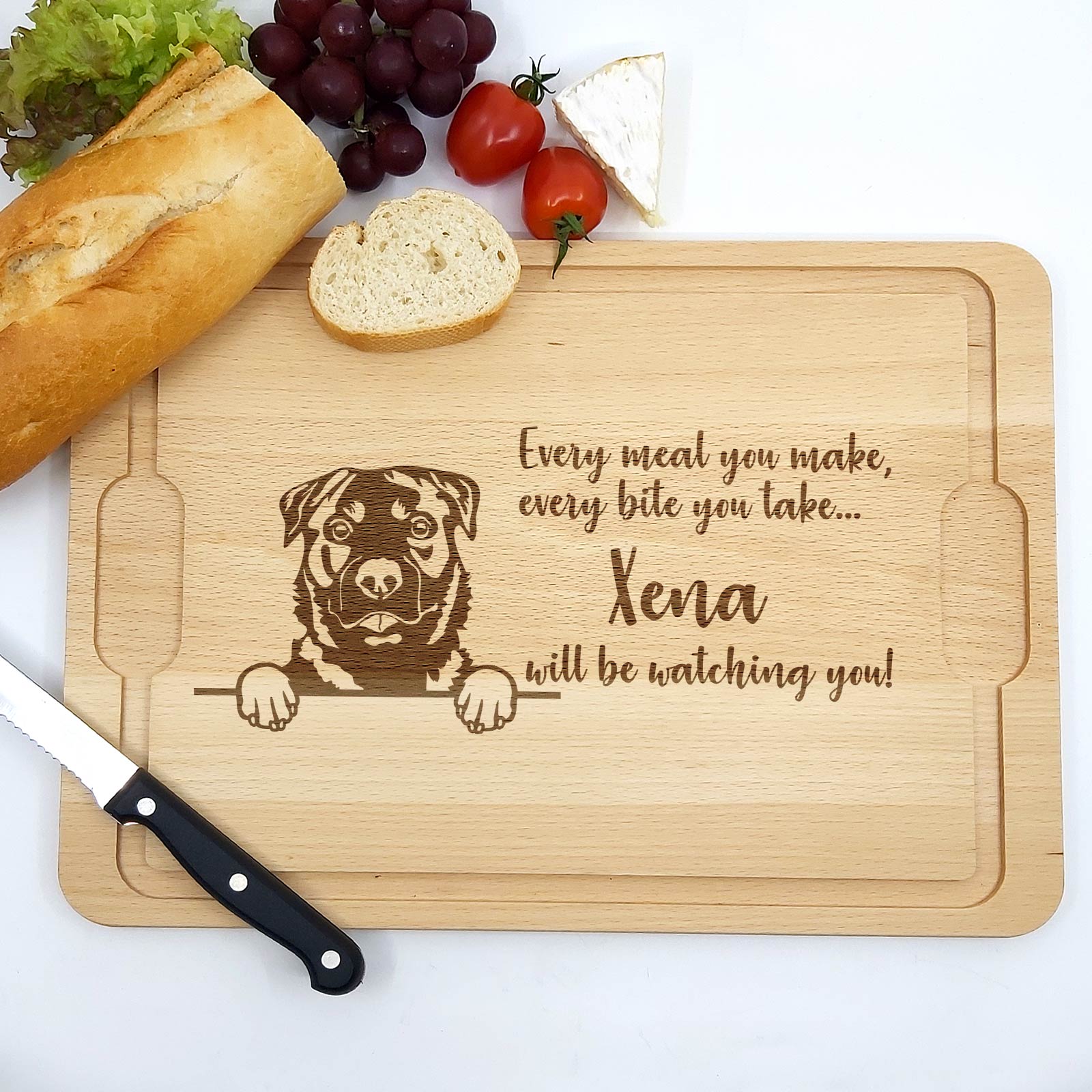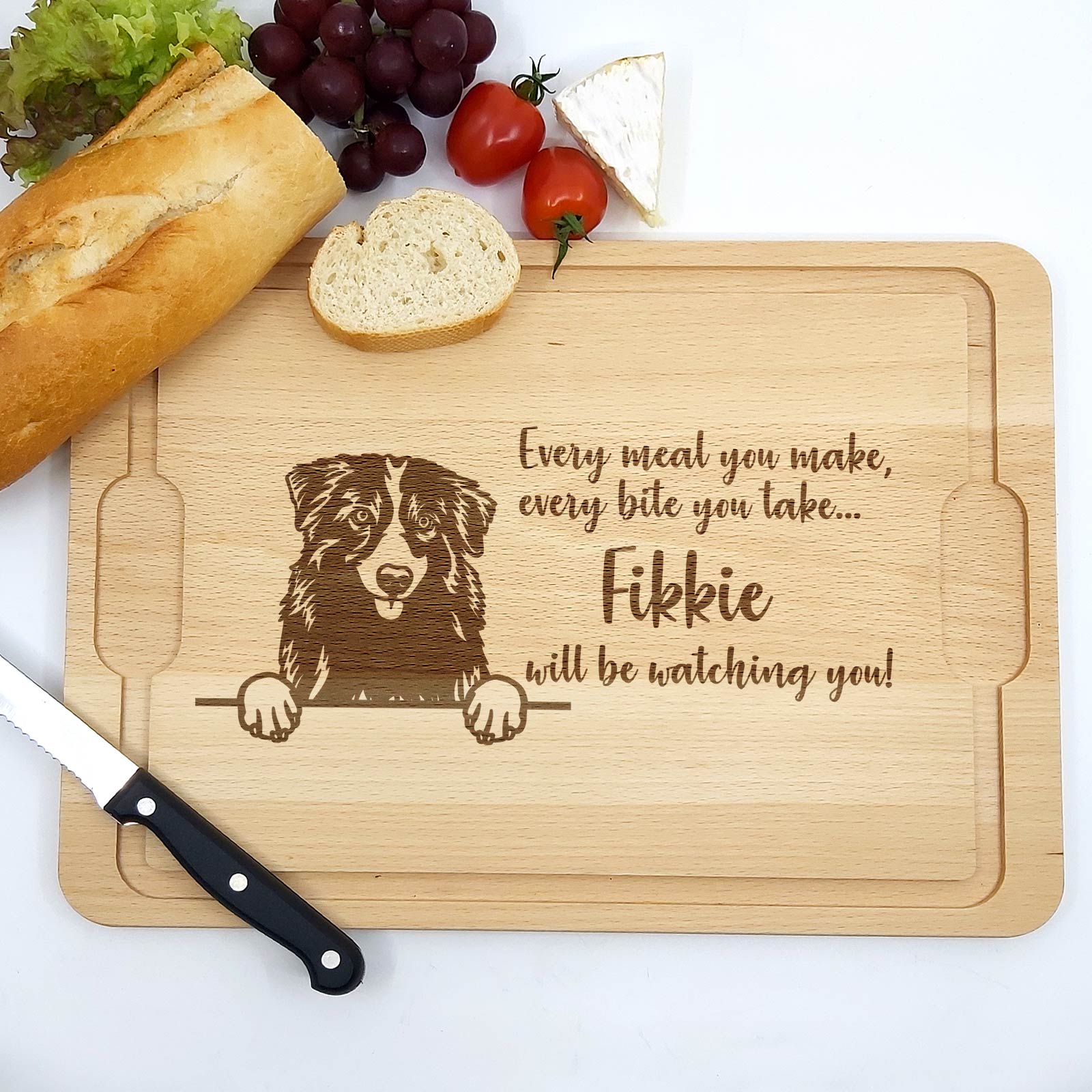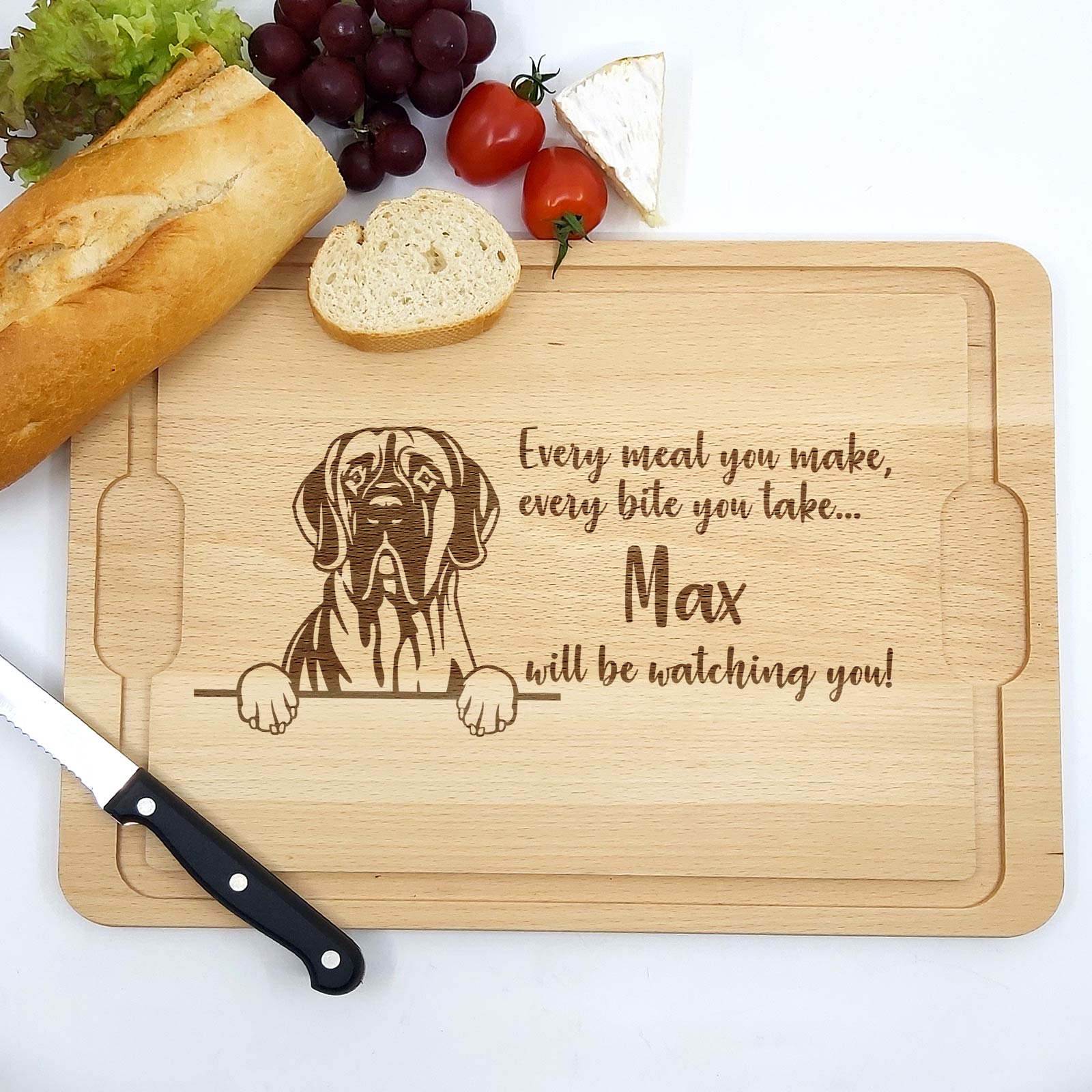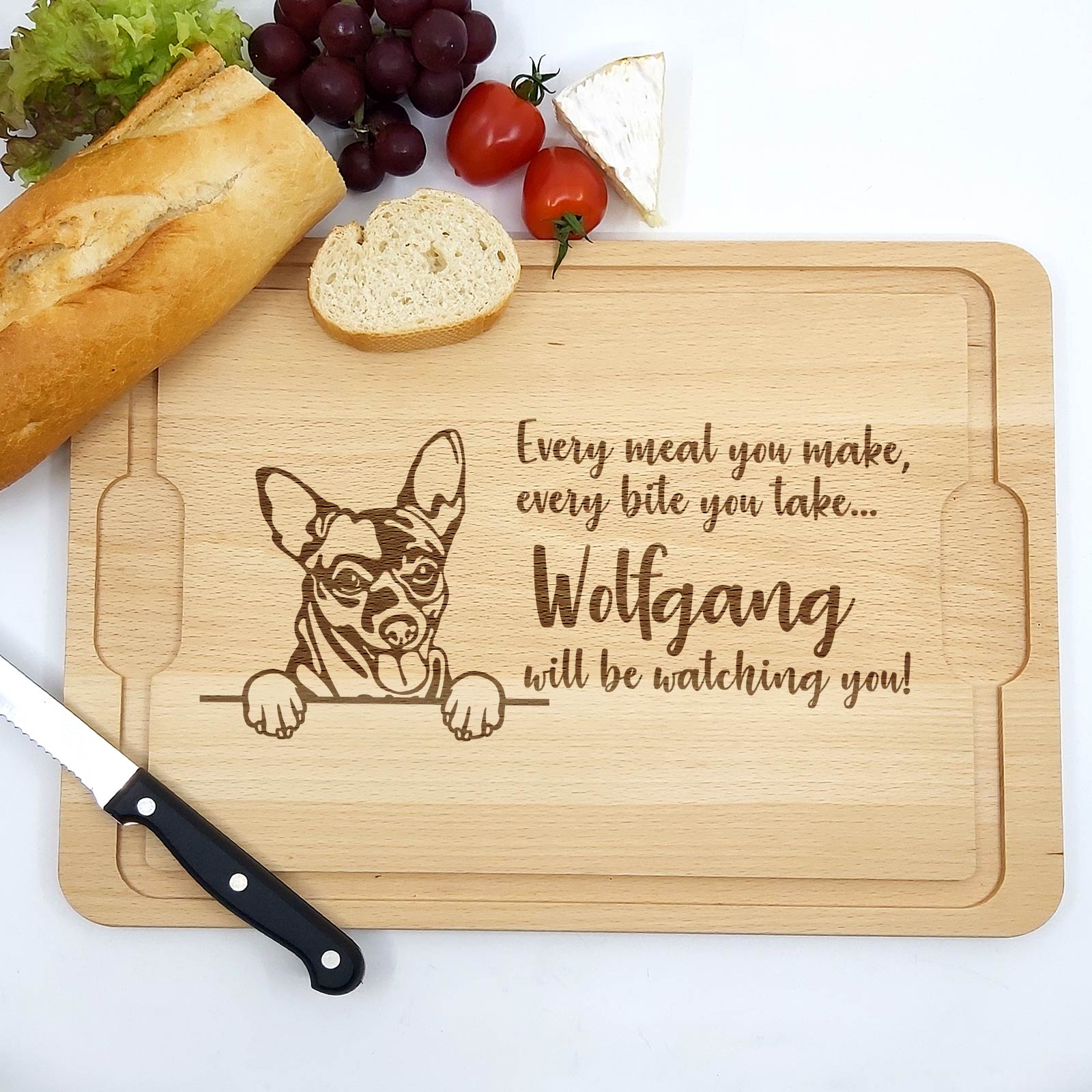 Dieses Brett ist das perfekte Geschenk für Hundebesitzer – ideal zu Geburtstagen, zum Welttierschutztag oder einfach als schöne Ergänzung für die eigene Küchenausstattung. Mit der Möglichkeit, den Namen Ihres Hundes hinzuzufügen, wird es zu einem persönlichen und einzigartigen Geschenk.