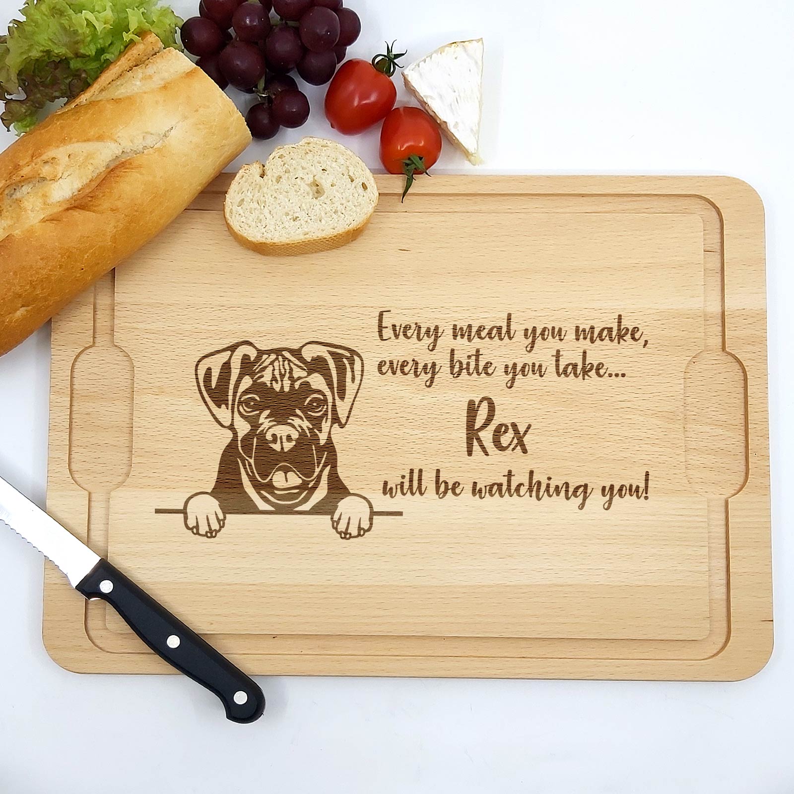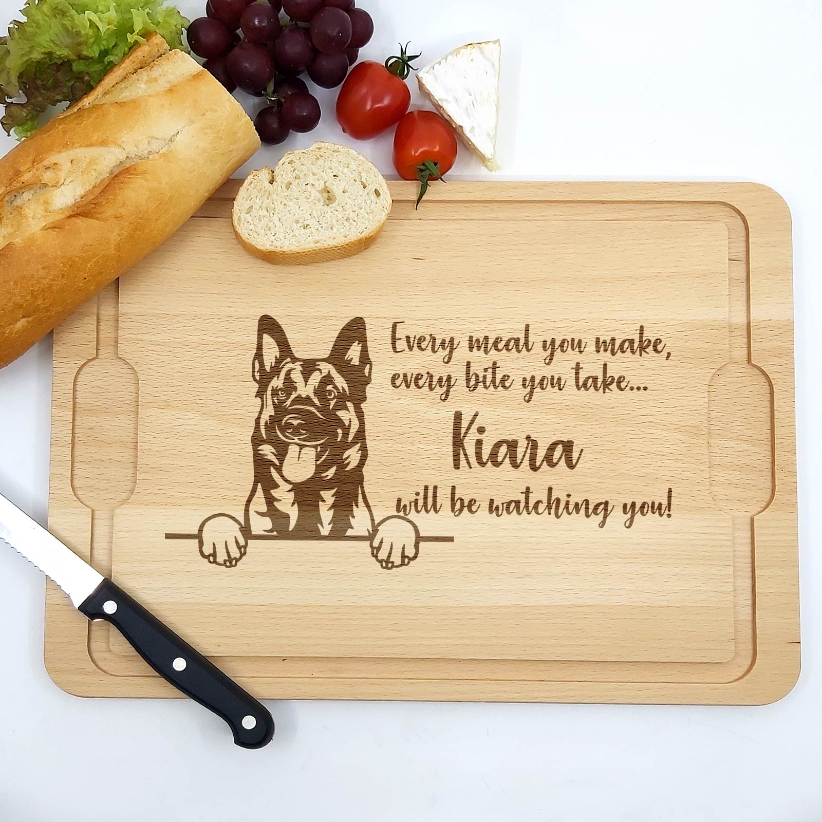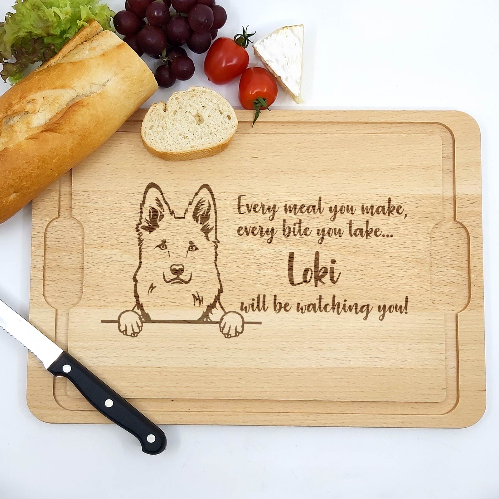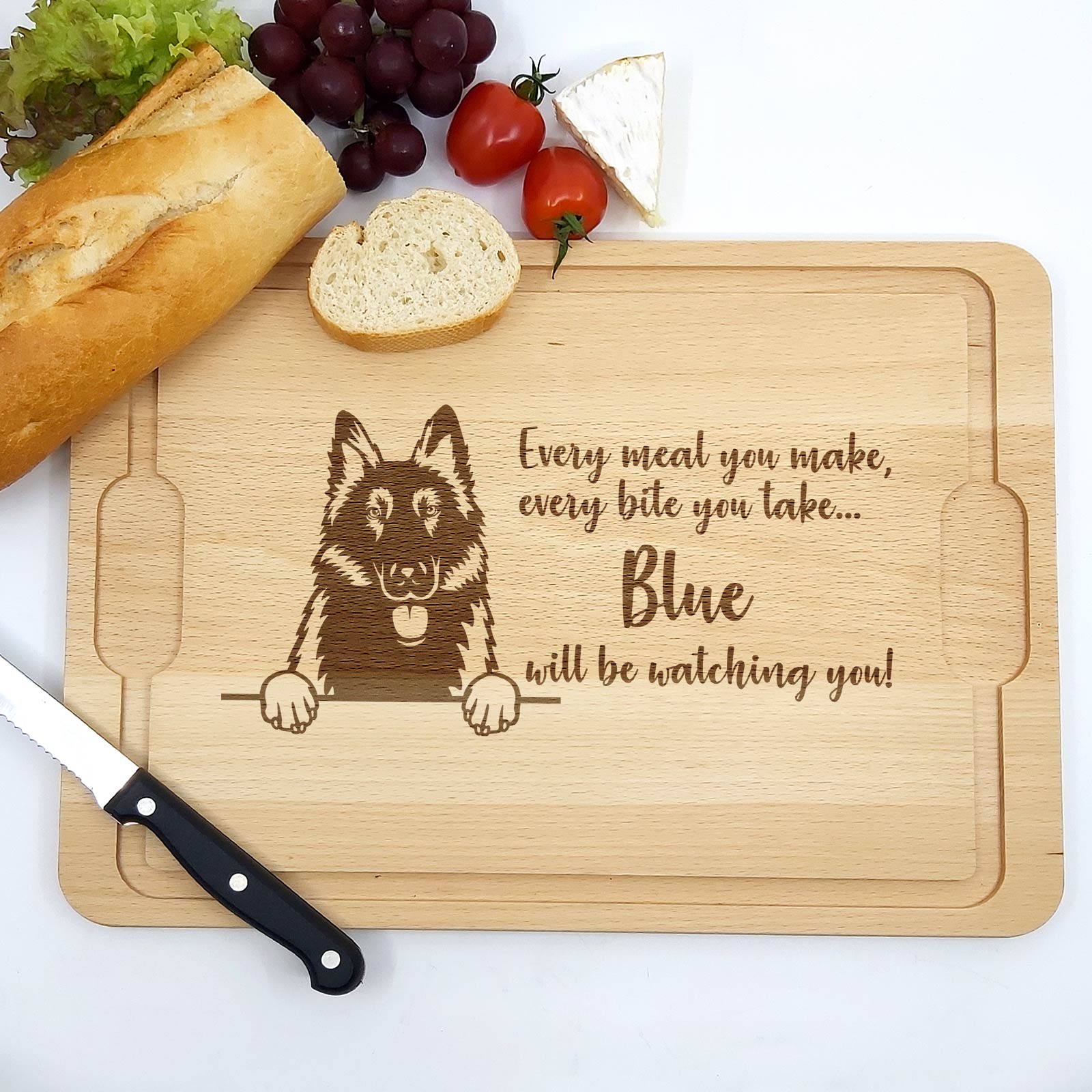 Dieses Brett ist das perfekte Geschenk für Hundebesitzer – ideal zu Geburtstagen, zum Welttierschutztag oder einfach als schöne Ergänzung für die eigene Küchenausstattung. Mit der Möglichkeit, den Namen Ihres Hundes hinzuzufügen, wird es zu einem persönlichen und einzigartigen Geschenk.